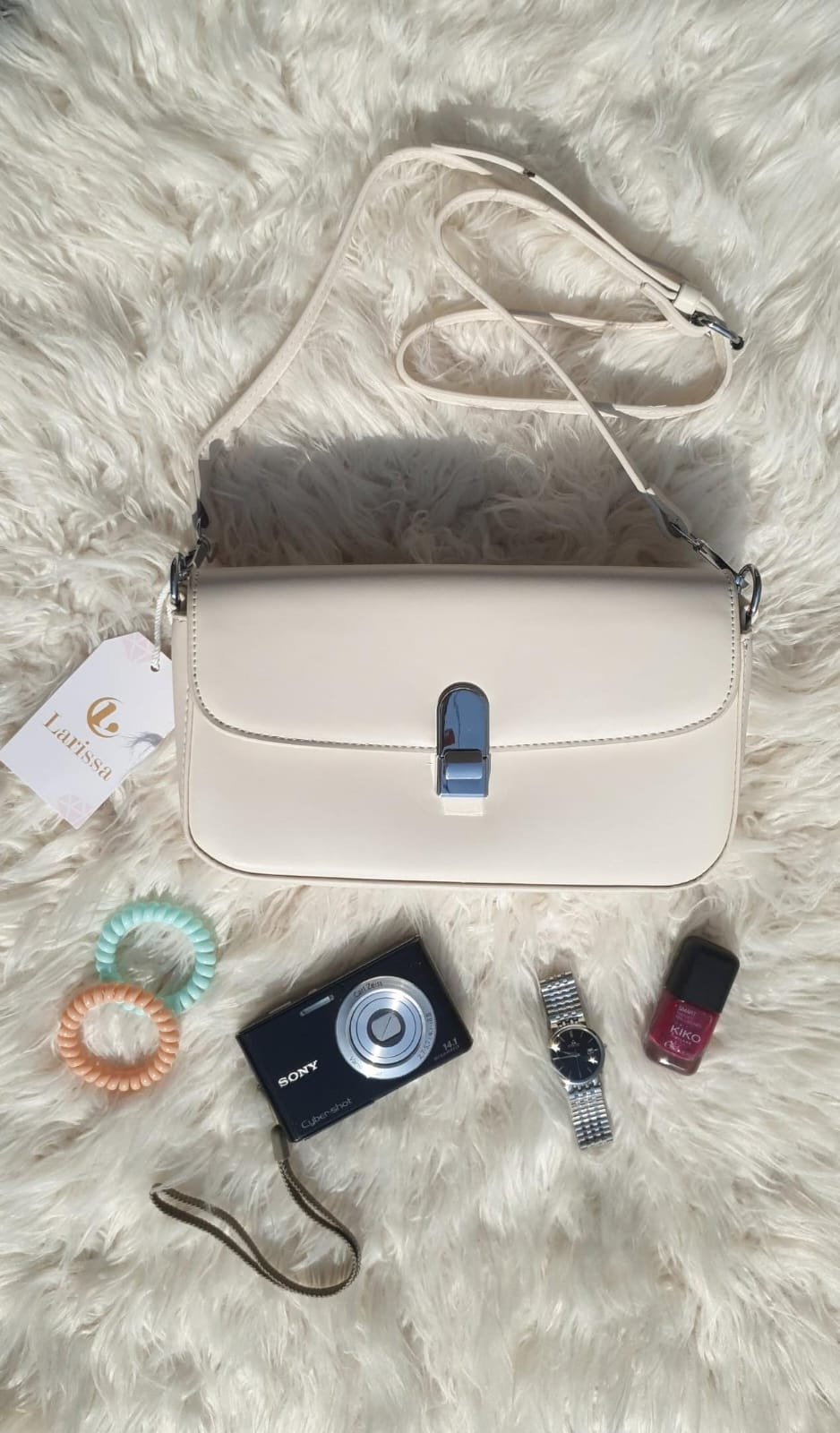 Effortlessly chic, the Larissa Classic Shoulder Bag in white brings sophistication to your wardrobe. The glossy faux leather finish and polished silver clasp create a minimal yet luxurious vibe.