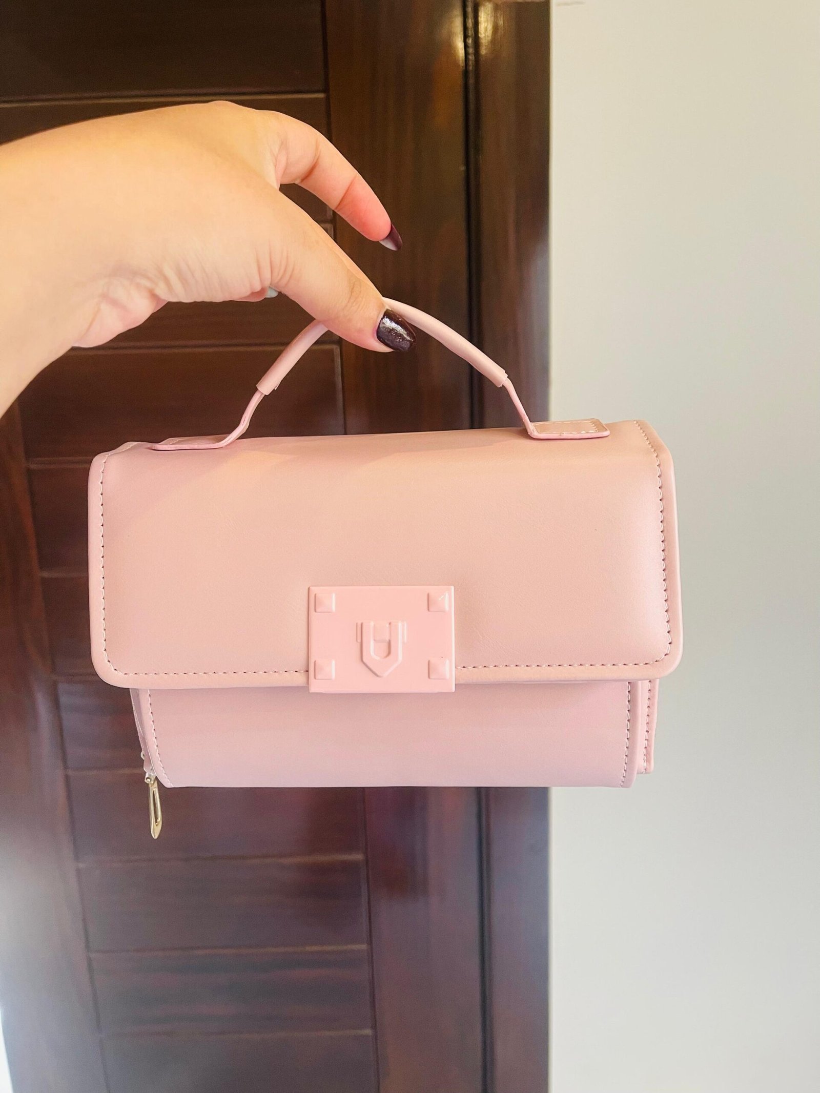 Chic, modern, and effortlessly feminine — this blush pink crossbody bag is your perfect everyday companion. Made from premium vegan leather, it features a structured silhouette, a sturdy top handle, and a detachable patterned strap for versatile styling.